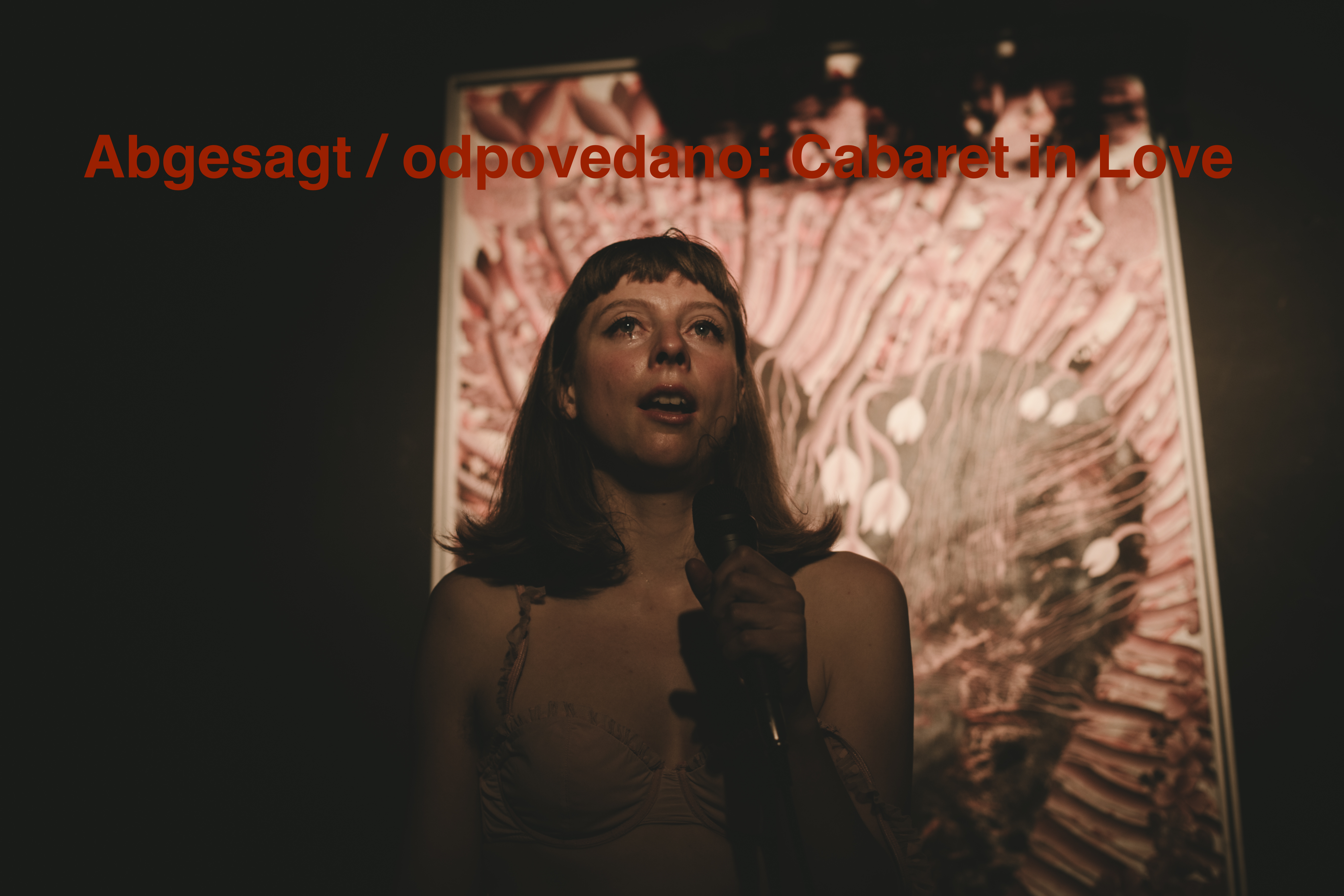 Cabaret in Love ist eine Serie von Bildern, die die persönlichen Erfahrungen einer Frau in der heutigen Gesellschaft widerspiegeln. Wie in einem Traum wechseln sich die kurzen kabarettistischen Pointen des Rahločudno Gledališče (Feinfehliges Theater) mit Erzählungen im Dunkeln ab, die den Zuschauer*innen zugeflüstert werden. Durch ihre Alter-Egos (Lulu Lapin das Häschen, Diva die Sängerin, Pin-up Baby Lyn Blanche, Candice die Tänzerin im Dunkeln) verwebt die akademische Künstlerin Referenzen aus Filmen, zeitgenössischer Kunst und Kabarett-Nostalgie. Mit Humor und magischen Melodien behandelt sie Themen wie Frauenrechte, Liebesprobleme und Gewalt, die in ihren eigenen inneren Kämpfen mitschwingen. Sie hält jeder*m einen Spiegel vor, unabhängig vom Geschlecht, und lädt die Betrachter*in auf eine emotionale, nostalgische Reise sowie eine Reflexion über Weiblichkeit und die Stellung der Frau in der heutigen Gesellschaft ein.