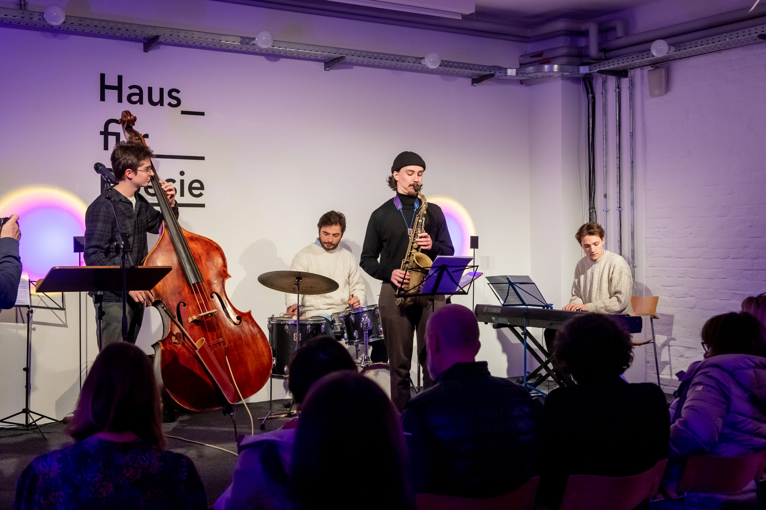 Musikalisch begleitet wird der Abend von den slowenischen Jazzmusikern Gal Golob und Samo Hude mit der Band Nomadia.