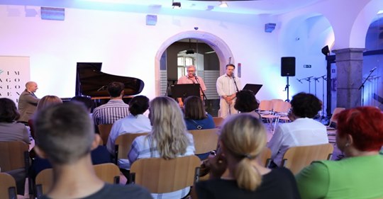 Einige Gedichte des nie zu Ende enthüllten Dichters France Prešeren und des feinfühligen Protagonisten der slowenischen Moderne Ivan Cankar wurden von den hervorragenden Interpreten und Schauspielern Aleš Valič und Urs Remond rezitiert. Die Poesie von Prešeren und die Gedichte aus der Erotik von Cankar konnte man sowohl in slowenischer als auch in deutscher Sprache hören. Sie wurden von Prof. Dr. Boštjan Dvořak, einem slowenischen Linguisten und Übersetzer der Humboldt Universität in Berlin ins Deutsche übersetzt. Darüber hinaus wurden die Interpreten auch musikalisch von Gregor Jagodič am Klavier begleitet. Video