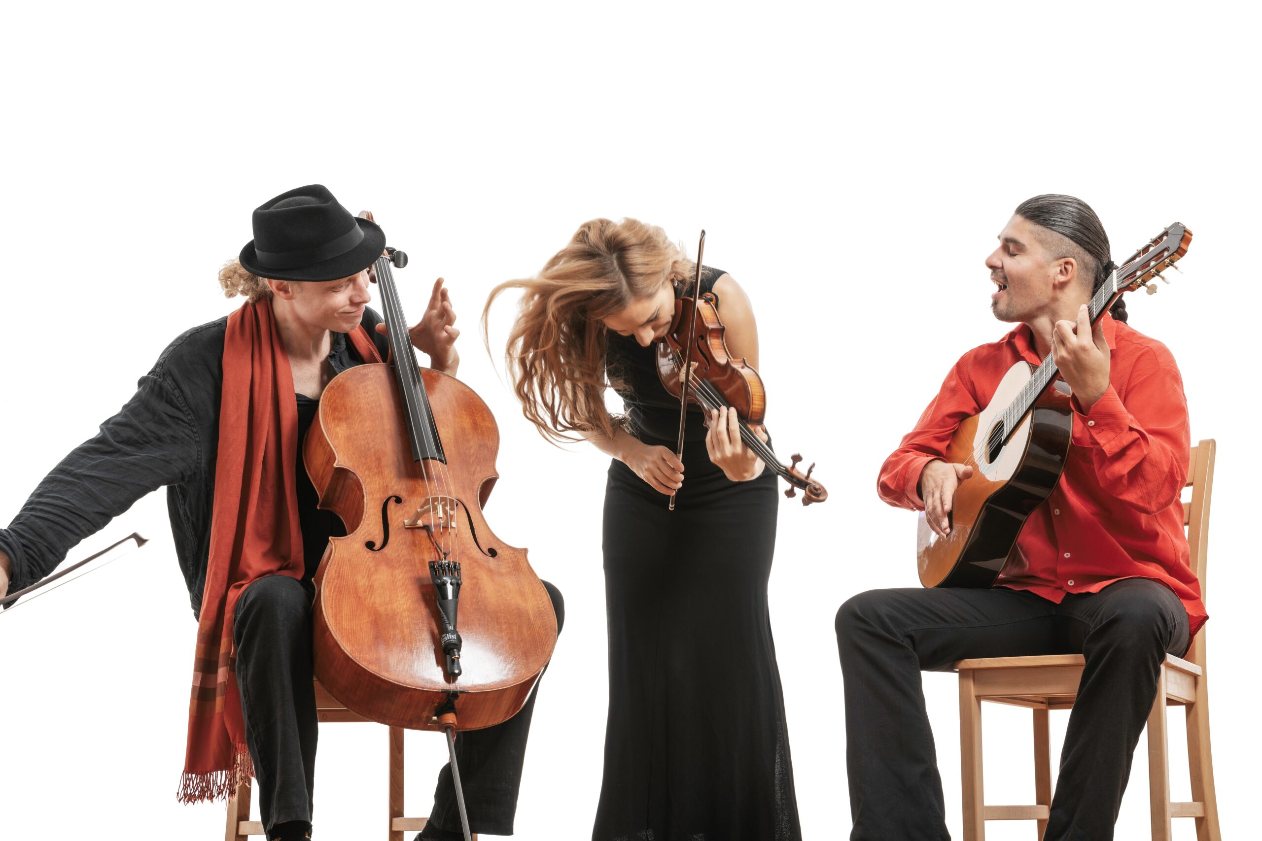 Das Wild Strings Trio (Link) wurde 2014 in Sloweniens Hauptstadt Ljubljana gegründet: Die slowakische Jazz-Geigerin Petra Onderufová hat den Gipsy-Swing förmlich im Blut. Von der klassischen Seite her kommt der französische Cellist Toby Kuhn, mit dem Vorteil allerdings, dass er auch improvisieren kann. Der slowenische Gitarrist Aleksander Kuzmić ist mit der Tradition der Roma-Gitarren aufgewachsen. Zusammen verschmelzen sie diese unterschiedlichen Musiktraditionen mit verblüffender Selbstverständlichkeit zu einem eindrücklichen Welt-Folk. Elemente aus Balkan-, Flamenco- und Folk-Musik werden spannend vermengt mit den jeweiligen Jazz- und Klassik-Erfahrungen und dann mit spielerischer Improvisation zum Ausdruck gebracht.
