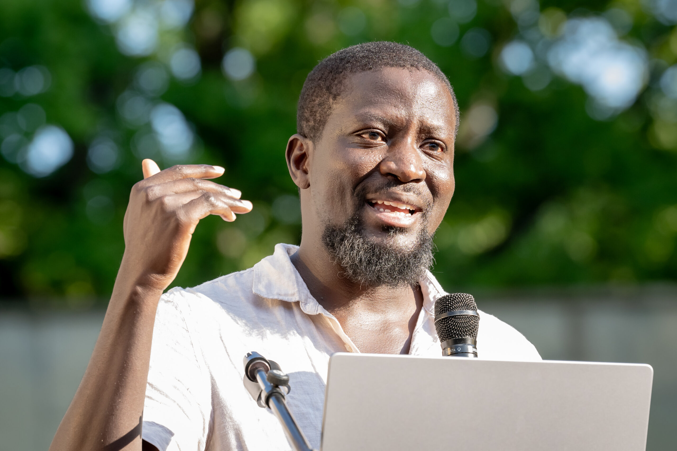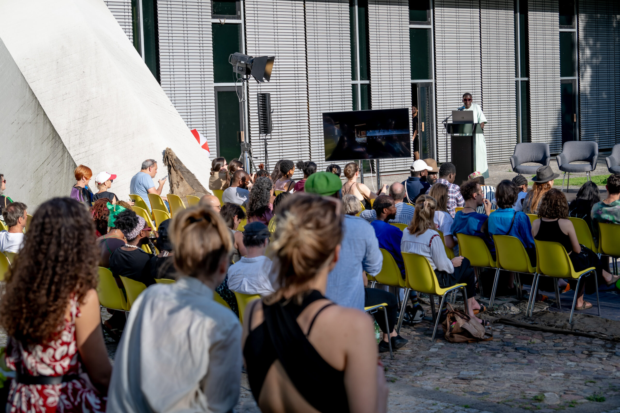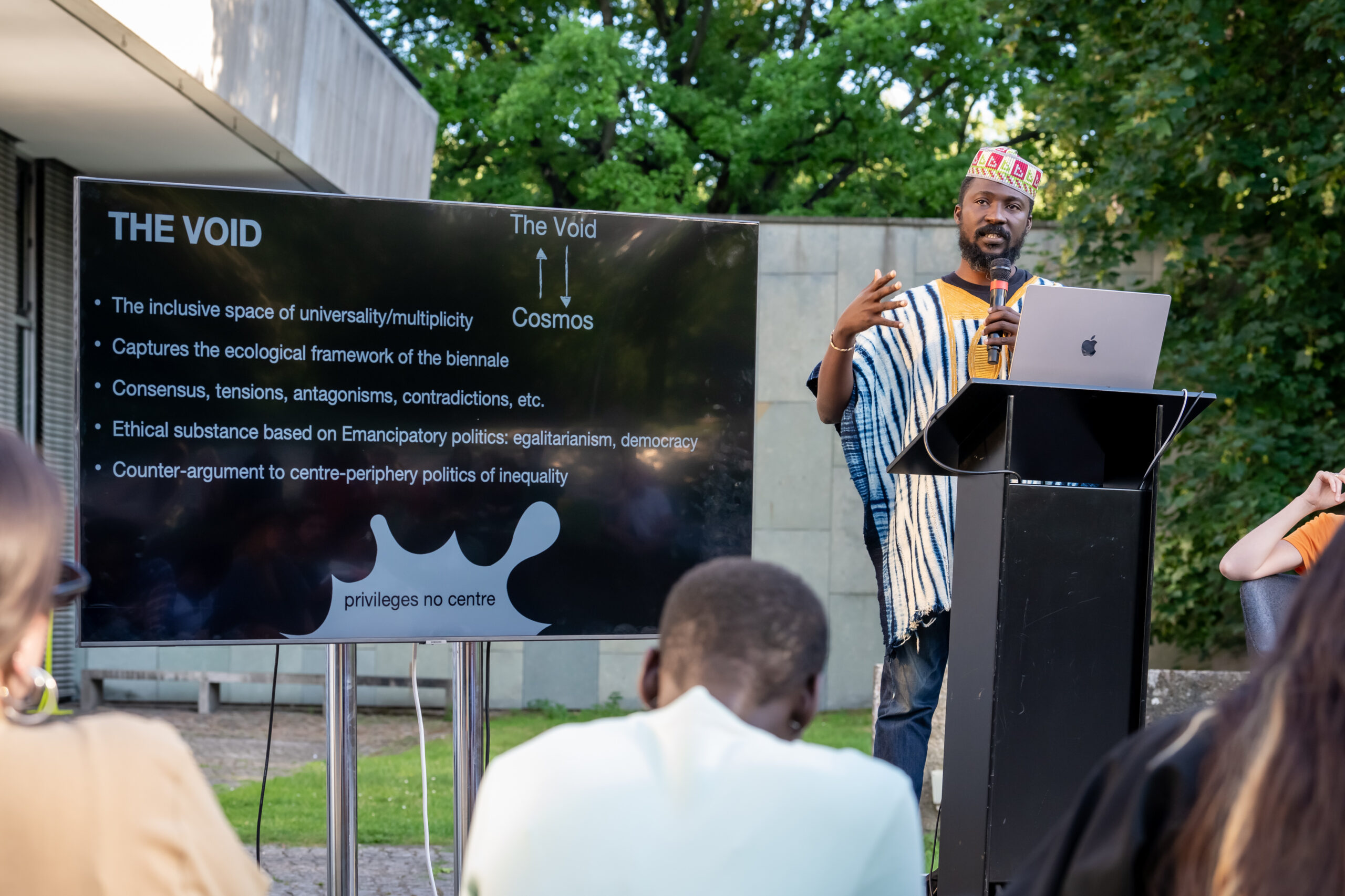 Die 35. Ausgabe der Biennale wurde in Berlin vom renommierten ghanaischen Künstler und künstlerischen Leiter der diesjährigen Biennale, Ibrahim Mahama, und vier Mitgliedern des Kuratorenteams vorgestellt: Kwasi-Ohene Ayeh, Kurator und Kritiker aus Kumasi, Beya Othmani, Kuratorin und Forscherin aus Tunesien, Alicia Knock, Kuratorin am Centre Pompidou, und Inga Lāce, Kuratorin am Lettischen Zentrum für zeitgenössische Kunst. Sie redeten über die Grundidee der diesjährigen Biennale, ihre pädagogischen aspekte, die Beziehung zwischen der graphischen Kunst und den Prozess des Aufbaus von Nationalstaaten im Afrika nach der Erlangung der Unabhängigkeit sowie über die Geschichte der Bewegung. Auch der Kurator, Publizist, Kulturvermittler und Direktor des HKW Bonaventure Soh Bejeng Ndikung und die Senior Kuratorin des HKW Marie Hélène Pereira wandten sich an das Publikum.