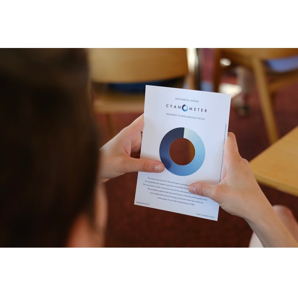 Das Cyanometer von Martin Bricelj Baraga ist ein Denkmal für die Blauheit des Himmels. Es ist inspiriert von dem ursprünglichen Cyanometer, das der Schweizer Physiker und Alpenforscher Horace-Bénédict de Saussure entwickelt hat. Sein Cyanometer – ein blauer Farbkreis – bildet den Kern des Denkmals und lenkt den Blick sanft zum Himmel zurück. Das Cyanometer ist sowohl ein Denkmal als auch eine Open-Source-Software, die in regelmäßigen Abständen Bilder des Himmels sammelt. Die Software lädt Bilder des Himmels auf die Website hoch, wo sie den entsprechenden Blauton auf dem de Saussure’schen Farbkreis ermittelt. Zusammen mit den Luftqualitätsdaten von Ljubljana, Wrocław, Dresden und Genf bildet die Cyanometer-Website ein Online-Archiv und einen rückblickenden Kalender, der den Blaustich des Himmels misst.