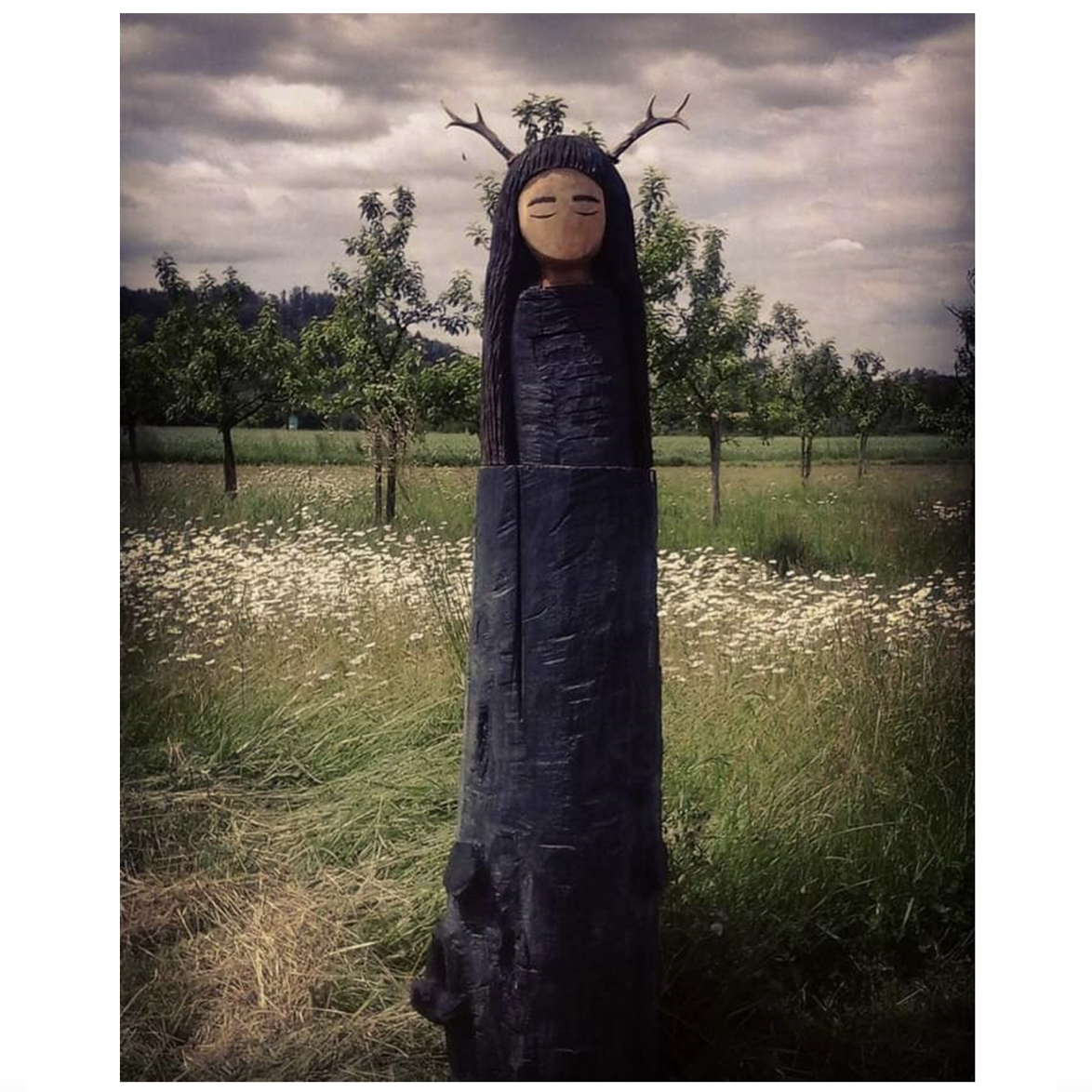 - Marjeta Medved, Die Norne/Rojenica/ (Die Geburtsfee), 2017, Apfelbaum Holz, 170 cm, Durchmesser cca 30 cm