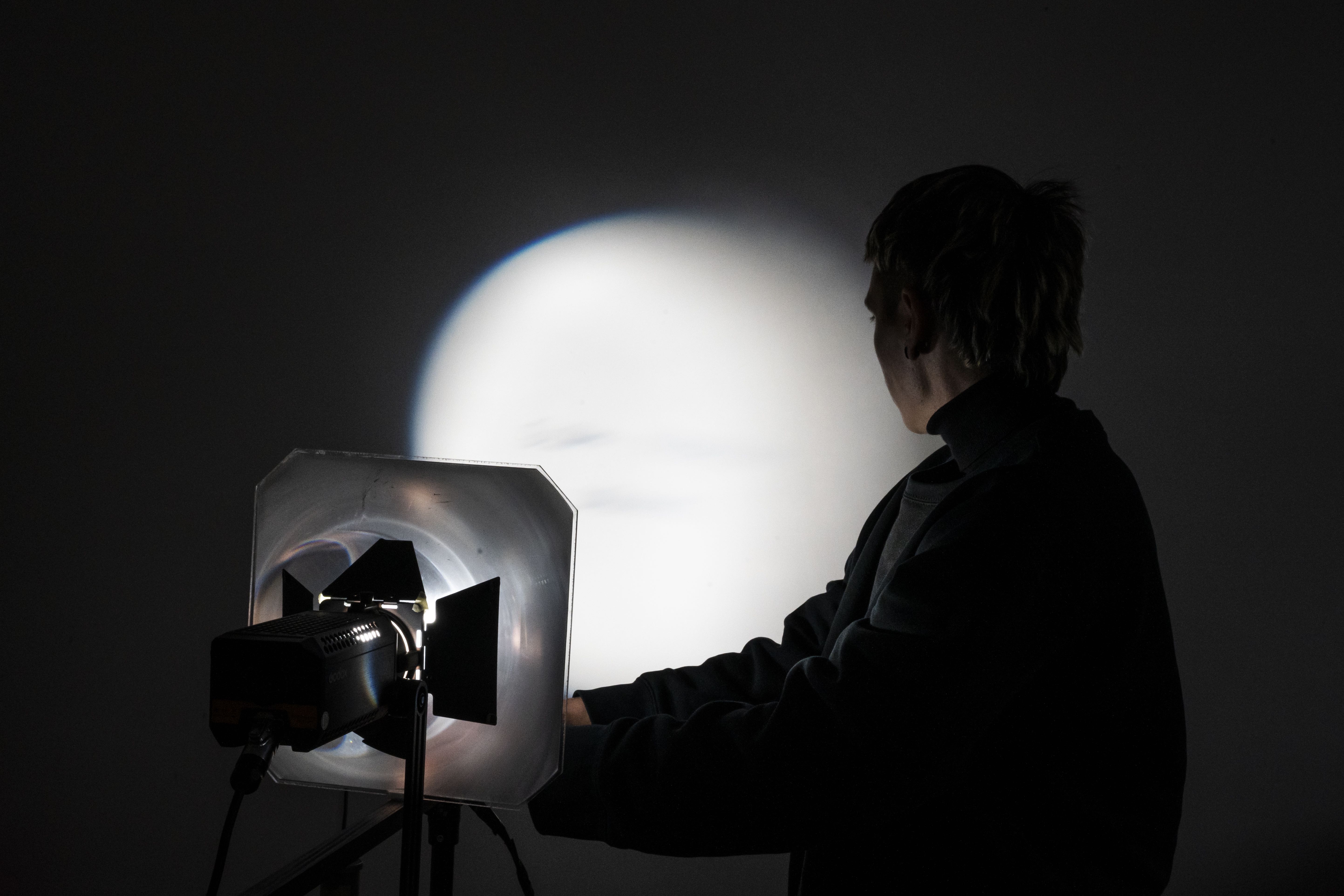 Neža Knez (1990) po izobrazbi kiparka, ki v zadnjih letih veliko časa posveča raziskavi gibljive slike in prostoru zunaj nje. Za njo je to prostor, potencial za ustvarjanje situacij s kiparskimi in kinematografskimi elementi, zvokom, glasom, besedilom in njegovo artikulacijo.